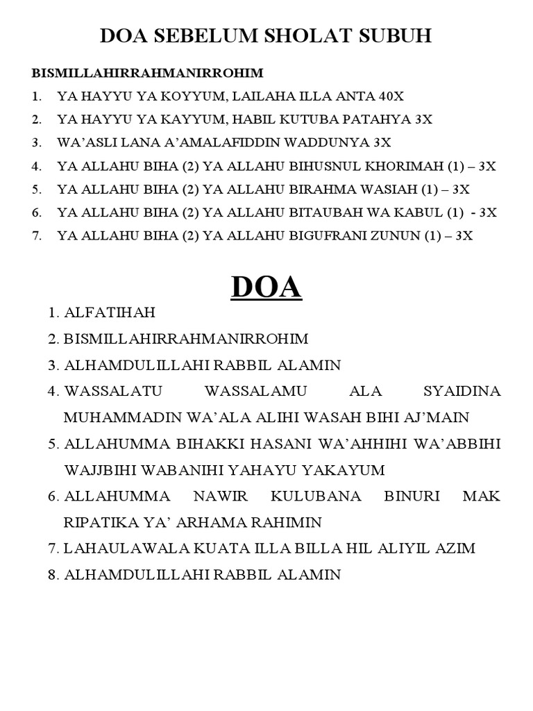 Ada 2 doa sholat subuh, yaitu doa setelah sholat subuh dan doa qunut yang dibaca saat rakaat kedua pada waktu iktidal. Dalam buku 'kupas tuntas qunut subuh' oleh galih maulana, lc. Istilah qunut oleh para ulama diartikan sebagai berikut Bacaan doa qunut surat pendek sholat subuh nazilah witir untuk imam download latin bahasa indonesia arab lengkap dan hukum beserta artinya. Selain membaca doa diatas, anda dapat membaca ayat kursi sebagai bacaan doa di pagi hari. Bacaan doa sholat dhuha lengkap arab, latin, dzikir, dan artinya, rahasia doa setelah selesai dan sesudah shalat dhuha dan keutamaan sholat dhuha 4 rakaat. Sementara secara istilah qunut dibagi dua, yaitu qunut nazilah. Ada 20 gudang lagu doa sholat subuh terbaru, klik salah satu untuk download lagu mudah dan cepat. Untuk tata cara dan doa sholat subuh pada setiap gerakan sendiri akan di bahas di bawah ini. Doa qunut dianjurkan untuk dibaca saat sholat subuh. Sedangkan ketika sholat subuh berjamaah maka membaca doa qunut dipimpin oleh imam dan para makmum hanya mengaminkan saja. Bacaan doa qunut dalam sholat subuh dilakukan setelah rukuk pada rakaat ke dua sebelum sujud. Doa setelah sholat fardhu adalah doa yang dilakukan setelah selesai sholat fardu atau sholat wajib 5 waktu (subuh, dzuhur, ashar, maghrib, dan isya').